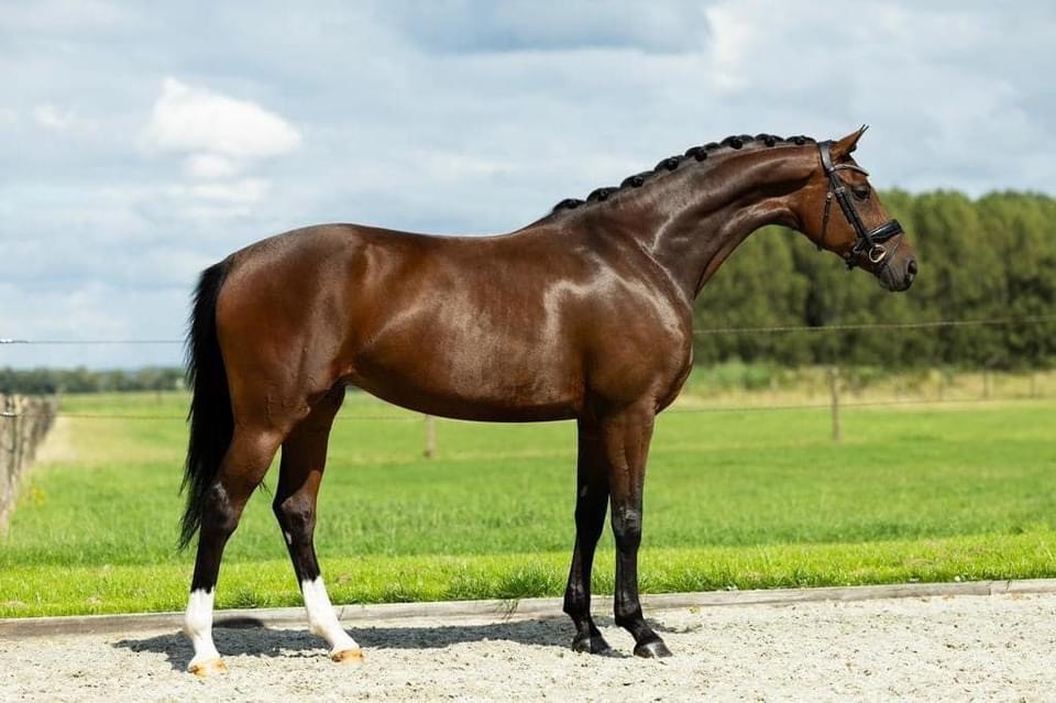 Deze super knappe, lieve en leergierige merrie heeft eerst 2 veulens gehad en wij hebben haar aangekocht in Oktober 2023. We zijn haar rustig op gaan bouwen onder het zadel en inmiddels loopt ze succesvol Z2, daarnaast springt ze ook al hele mooie series met wissels.